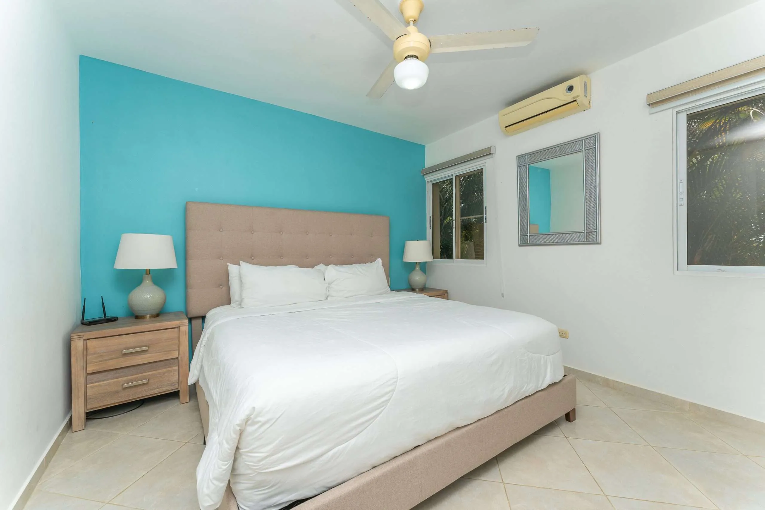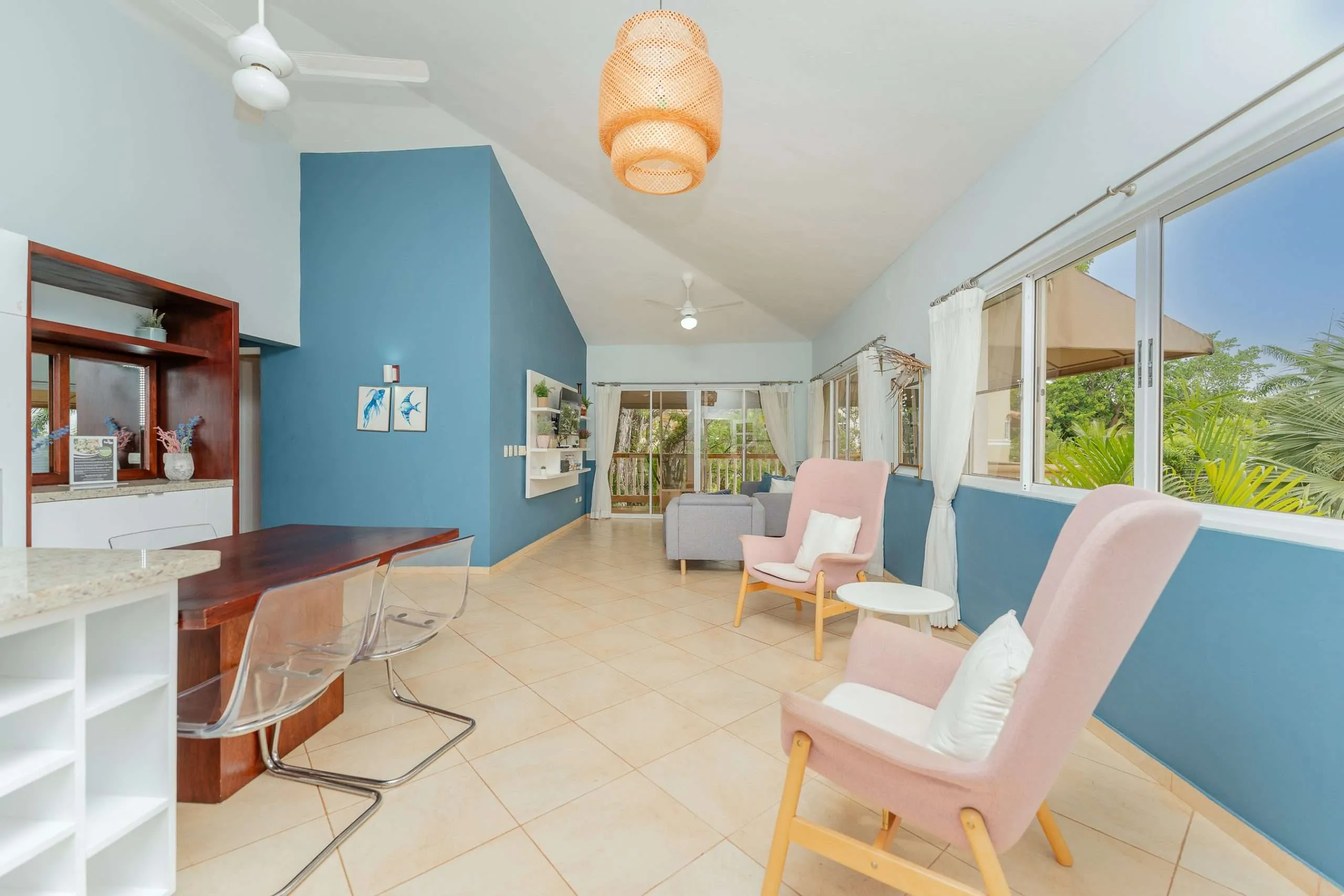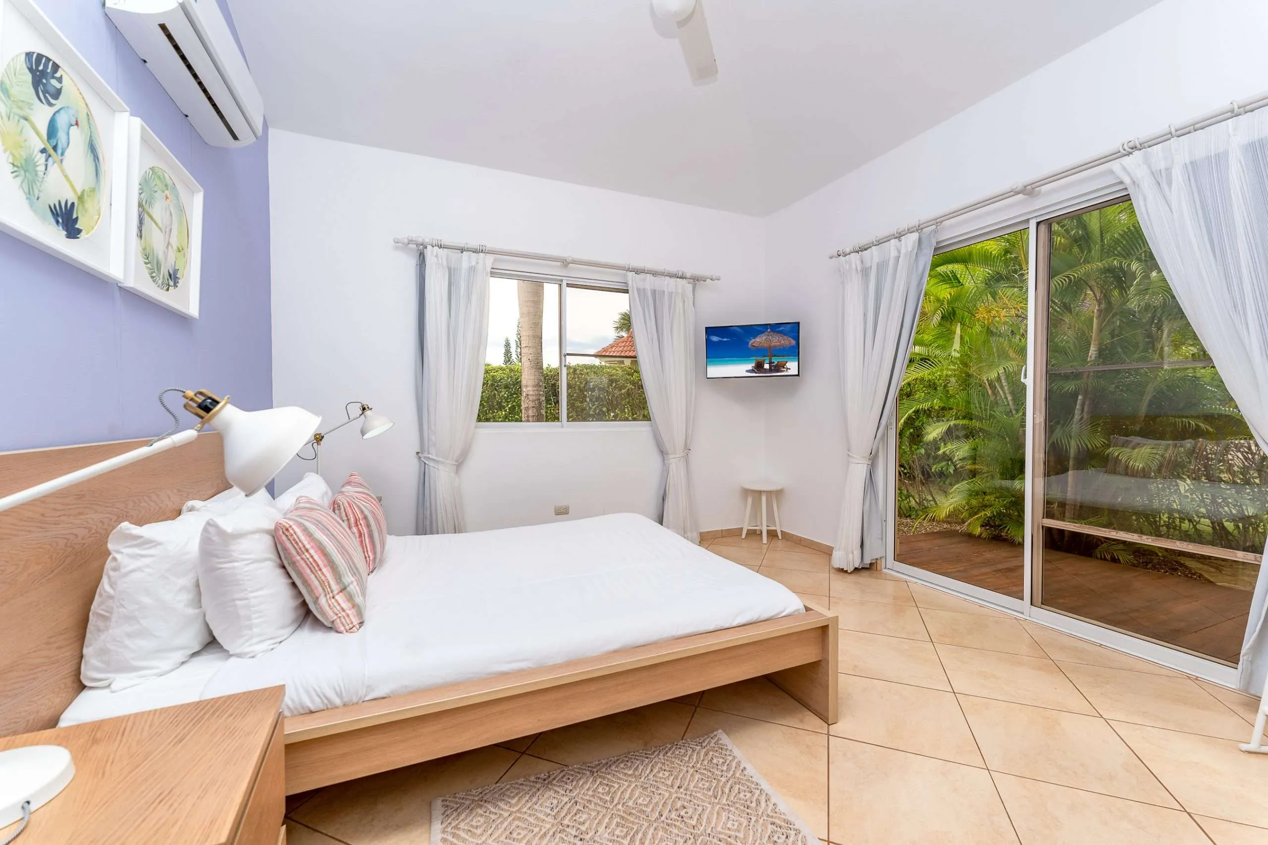 The upper level of this villa is an extended Colibri Model featuring a wrap-around terrace. The spacious main floor includes 2 bedrooms and 2 bathrooms, with an open-concept kitchen and living area offering stunning ocean and mountain views, as well as beautiful sunsets every evening. Large patio doors open to the back terrace, where you’ll find the pool and Jacuzzi surrounded by a lush tropical garden. The lower level is a self-contained one-bedroom apartment (approximately 45 m²) with a living and kitchen area, air-conditioned bedroom, and a small walk-in closet.